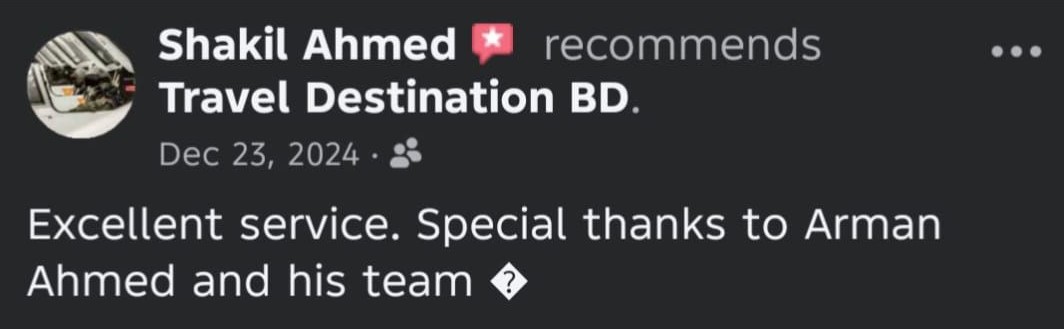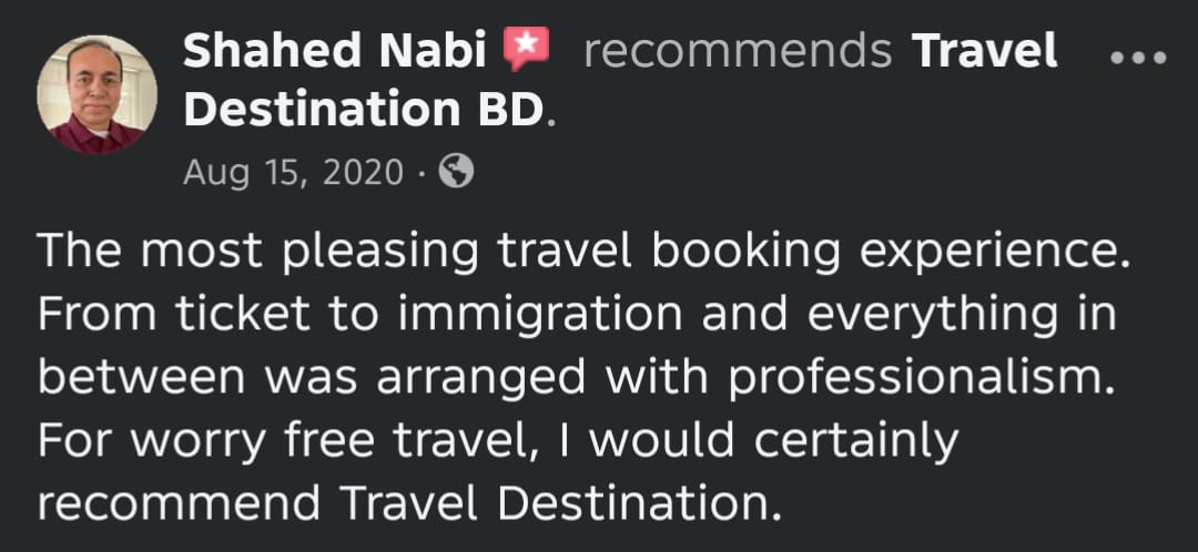 Travel Destination BD is a trusted travel agency in Bangladesh, offering local & international tour packages, air ticket booking, visa processing, and Umrah services at affordable prices.