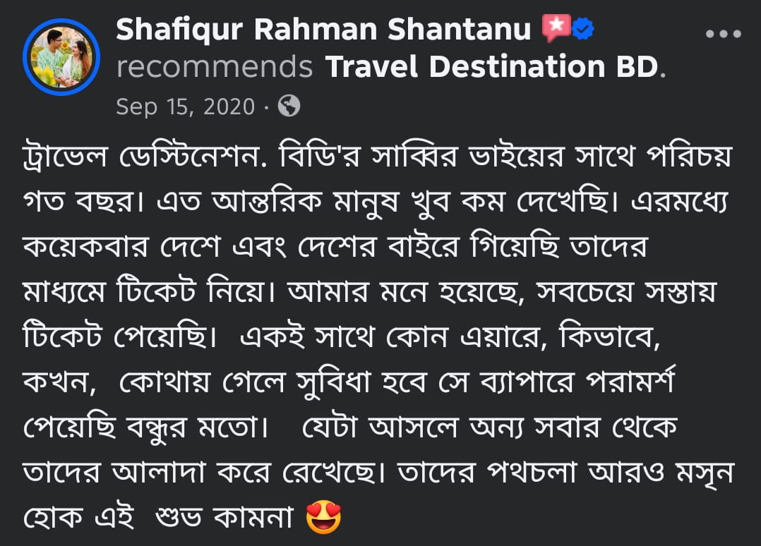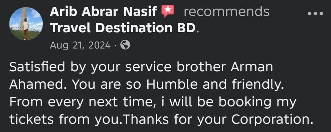 At Travel Destination BD, we turn your travel dreams into reality. As a premier travel company, we specialize in curating unforgettable experiences across the globe. Whether you're planning a relaxing beach getaway, an adventurous mountain trek, or a cultural exploration, we ensure every trip is seamless and memorable.