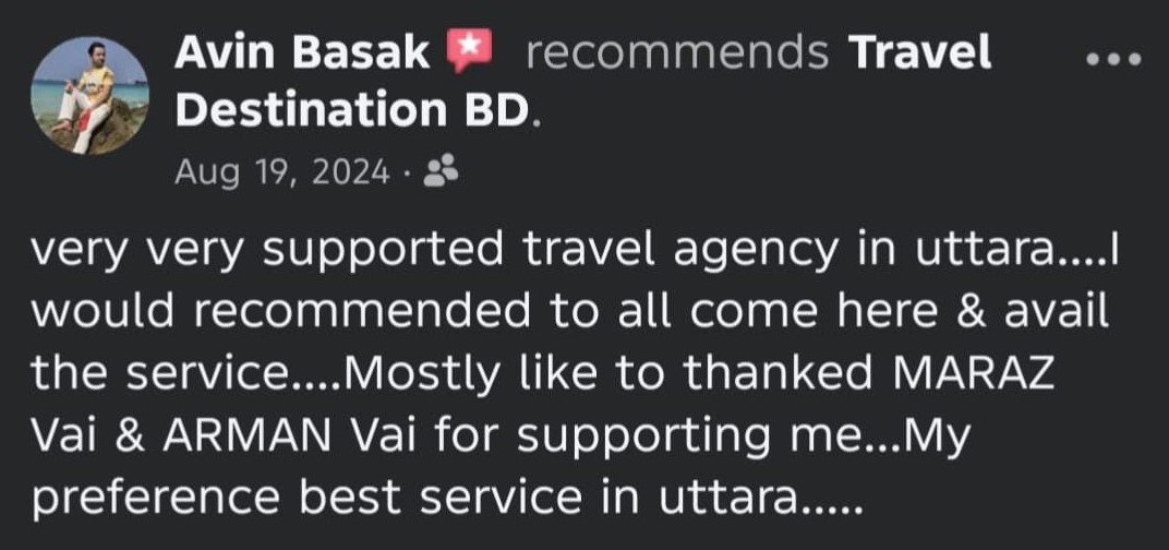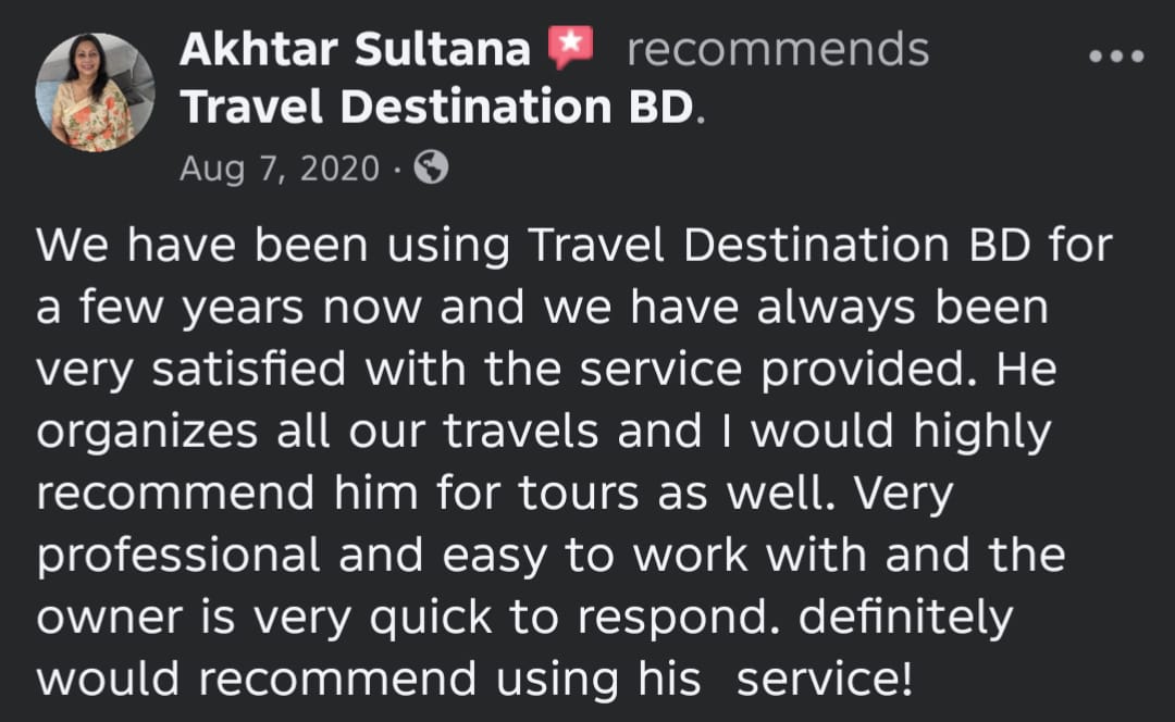 At Travel Destination BD, we turn your travel dreams into reality. As a premier travel company, we specialize in curating unforgettable experiences across the globe. Whether you're planning a relaxing beach getaway, an adventurous mountain trek, or a cultural exploration, we ensure every trip is seamless and memorable.