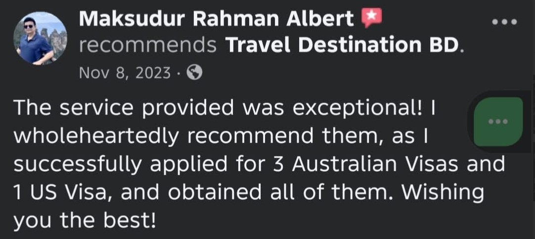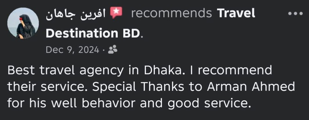 Travel Destination BD is a trusted travel agency in Bangladesh, offering local & international tour packages, air ticket booking, visa processing, and Umrah services at affordable prices.